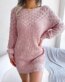 Women's Sweater Knitted Casual Dress Fashion Solid Color Hollowed Out Slash Neck Long Sleeved Pullover Woolen Sweater Dress