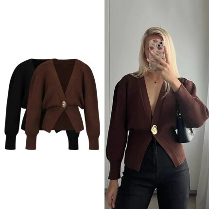 Women’s Sweater Knitted Casual Dress Fashion Solid Color Hollowed Out Slash Neck Long Sleeved Pullover Woolen Sweater Dress